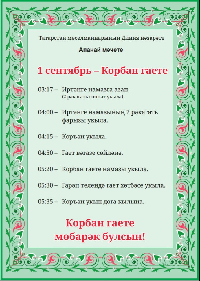 Хаҗ тәмамлануын билгеләүче әлеге бәйрәмне мөселманнар көтеп ала. Апанай мәчете Корбан гаетен үткәрү тәртибе белән таныштыра.