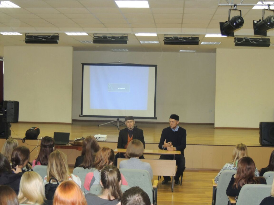 {xtypo_dropcap}28{/xtypo_dropcap} сентябрь көнне Казанның кече бизнес һәм эшмәкәрлек көллиятендә “Экстремизга – юк!” айлыгы кысаларында "Яшьләр арасында экстремизмны кисәтү" дигән темага түгәрәк өстәл оештырылды. Көллиятнең беренче курс студентлары белән нәзарәтнең дәгьват бүлеге җитәкчесе, Апанай мәчете имам-хатыйбы Нияз хәзрәт Сабиров һәм Рус география җәмгыяте әгъзасы Рөстәм Гильметдинов очрашты.