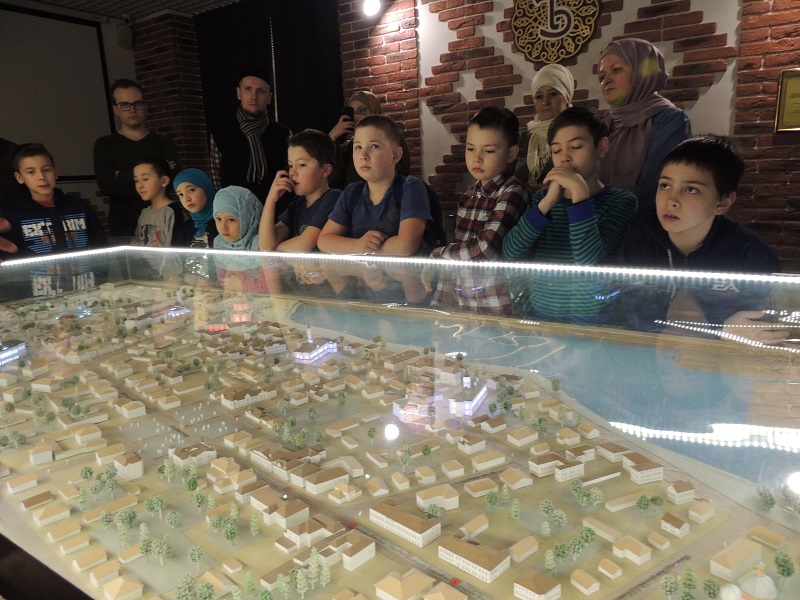 Бер сәгать дәвамында экскурсовод Светлана Васелова аларга “Казан җирлегендәге җәннәт почмагы” (элек аны шулай дип атаганнар) – Иске Татар бистәсе һәм бистә татарлары җәмгыятенең оешу тарихын сөйләде. Музейның беренче залында Иске Татар бистәсе тарихы турында сюжет, элекке фотосурәтләрдән слайд-шоу һәм Татар бистәсенең зур макеты тәкъдим ителде. “Шәрык” клубы стилендә ясалган залда инфографикалы видеотарих күрсәтелде. Ул залдан чыгышлый ук балалар, үткән гасырлар пассажирларына әйләнеп, “Барабыз” чанасында “сәяхәт итте”. Интерактив залда исә Казан татарларының көнкүреше, мәдәнияте, кәсебе, һөнәре, эшчәнлеге белән таныштырдылар. Биредә тәкъдим ителгән антиквариат һәм татарларның күз явын алырлык кул эшләнмәләренең бәяләре дә күрсәтелгән һәм аларны истәлеккә сатып алырга була иде. Кунакларны чәй белән сыйлау бүлмәсе татар өен хәтерләтә. “Башы түшәмгә тигән” ап-ак мичле, киндер эскәтерле, бизәкле бирнә сандыклы, чәй-шикәрле татар йортында балалар шактый озак тоткарландылар; түр бүлмәдә урнашкан сувенир, тәм-томнар лавкасында да булдылар.
